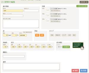 情報の修正や肥料の削除が可能です。