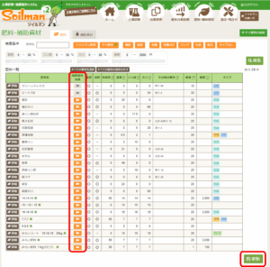 施肥設計時に表示したくない肥料はアイコンをクリックして灰色にし、画面下の「更新」ボタンを押します。