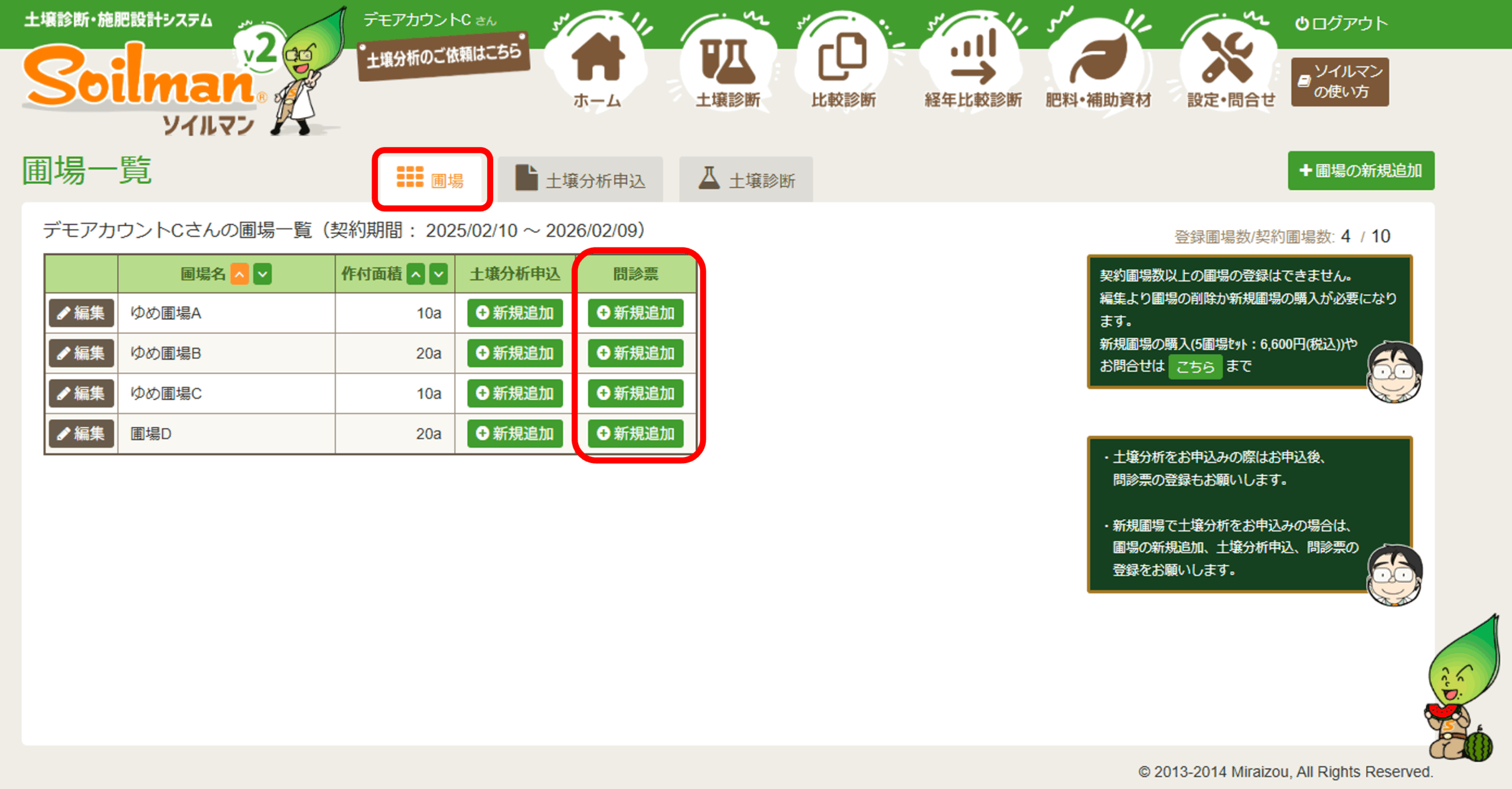 ソイルマンの契約圃場数に達しても、追加5圃場セットを購入することで新たな圃場の登録が可能です。